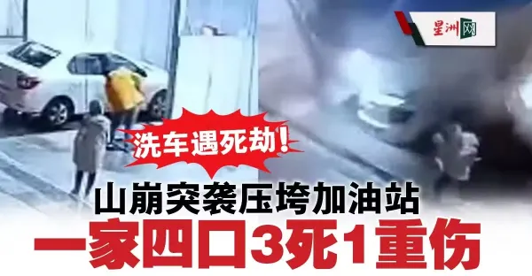 一家四口加油站洗車遇死劫!山崩突襲壓垮加油站 釀3死1重傷
