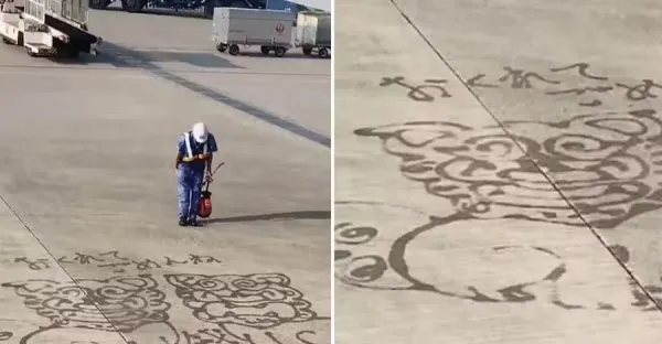 沖繩班機延誤!地勤人員「憑空畫2風獅爺」跟乘客鞠躬道歉:抱歉讓你們久等了~