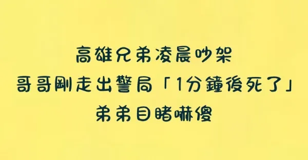 高雄兄弟凌晨吵架!!! 哥哥剛走出警局「1分鐘後死了」 弟弟目睹嚇傻