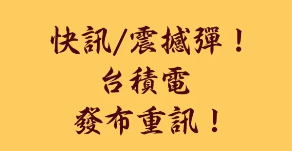 快訊 / 震撼彈!台積電發布重訊!!!