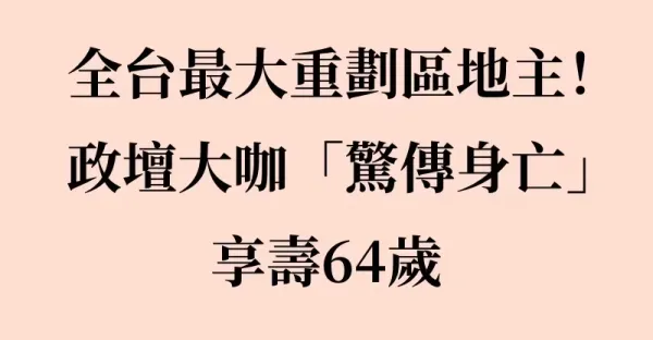 全台最大重劃區地主!!! 政壇大咖「驚傳身亡」享壽64歲 親友嘆 :「發現得太晚...」