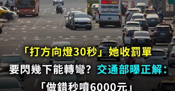 「打方向燈30秒內她收到罰單」閃幾下能轉彎?! 交通部曝正解:「做錯秒噴6000」一堆駕駛不知道