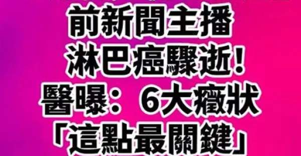 「2月前還開心發文」前新聞主播淋巴癌驟逝! 醫曝:6大症狀「這點最關鍵」快檢查