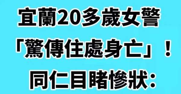 震撼彈!!宜蘭20多歲女警「驚傳住處身亡」同仁目睹慘狀:「生前曾傳訊息」