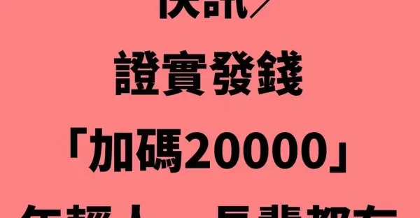 快訊/證實發錢「加碼20000」! 年輕人、長輩都有