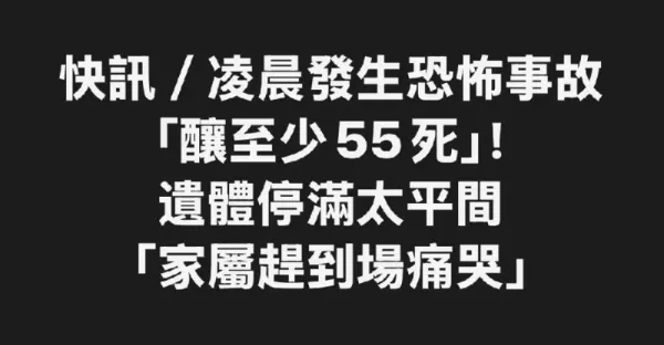 快訊/凌晨發生恐怖事故「釀至少55死」! 遺體停滿太平間「家屬趕到場痛哭」