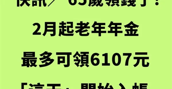快訊/65歲領錢了!2月開始老年年金最多可領6107元,「這天」開始入帳