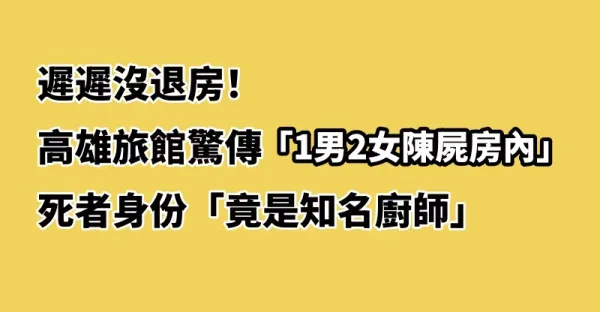 遲遲沒退房!!! 高雄旅館驚傳「1男2女陳屍房內」 死者身份「竟是知名廚師」死因疑曝光