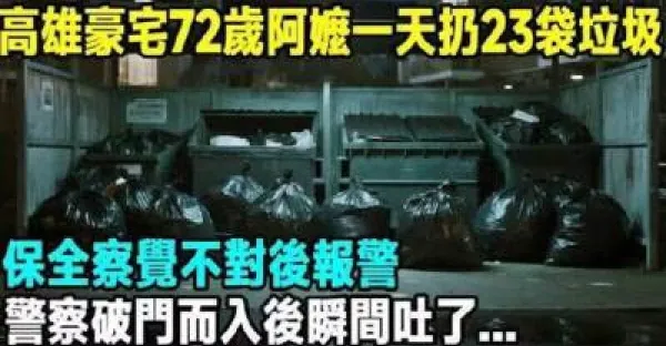 高雄豪宅72歲阿嬤一天扔23袋垃圾, 保全察覺不對後報警,警察破門而入後瞬間吐了...