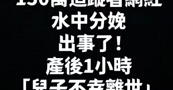 150萬追蹤者網紅,水中分娩出事了!產後1小時「兒子不幸離世」