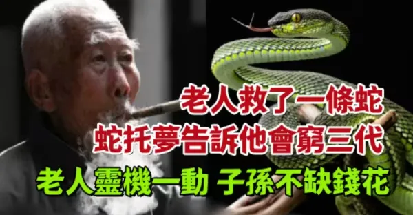 老人救了一條蛇,蛇託夢告訴他會窮三代, 老人靈機一動, 子孫不缺錢花