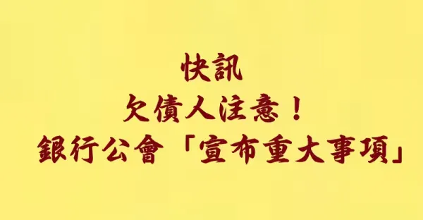 快訊/欠債人注意!!! 銀行公會 「宣布重大事項」