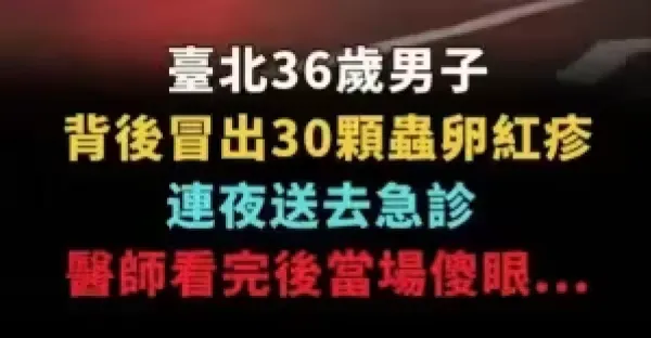 台北36歲男子背後冒出30顆蟲卵紅疹, 連夜送去急診, 醫師看完後當場傻眼!