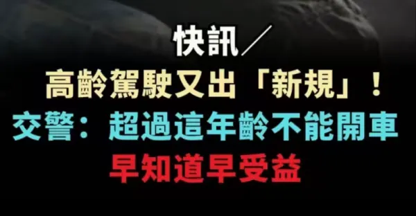快訊/ 高齡駕駛又出「新規」!!! 交警:超過這年齡不能開車, 早知道早受益
