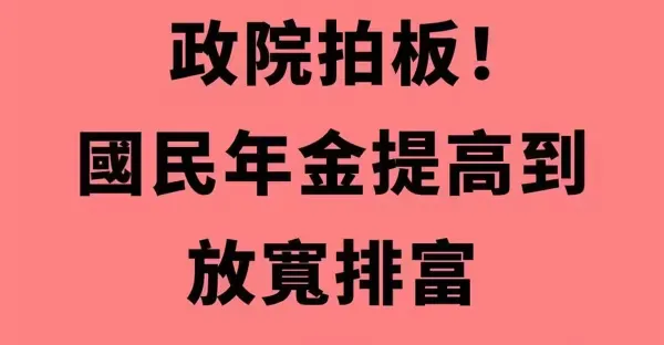 快訊/政院拍板! 國民年金提高到、放寬排富,逾176萬人受惠