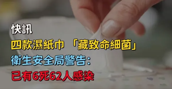 快訊/衛生安全局警告: 四款濕紙巾 「藏致命細菌」已有6死62人感染