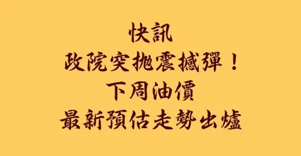 快訊/政院突拋震撼彈!!! 下周油價,最新預估走勢出爐