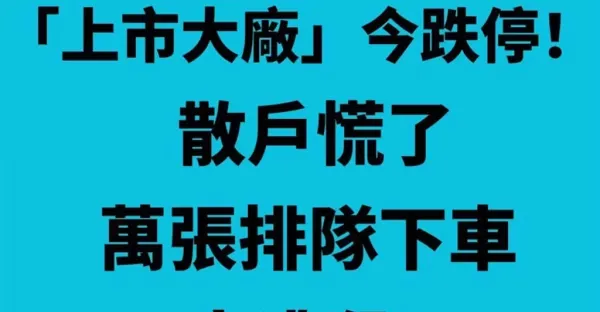 快訊/「上市大廠」今跌停板!散戶慌了,萬張排隊下車大逃殺!