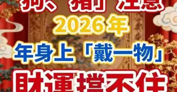 生肖「猴、雞、狗、豬」注意 !2026年身上「戴一物」財運擋不住