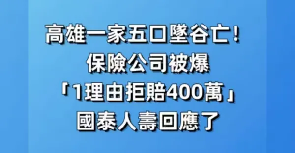 快訊/高雄一家五口墜谷亡!!! 保險公司被爆「1理由拒賠400萬」國泰人壽回應了