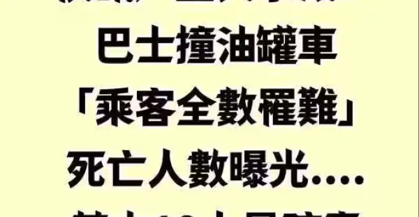 快訊/重大事故!巴士撞油罐車「乘客全數罹難」死亡人數曝光.... 其中19人是孩童