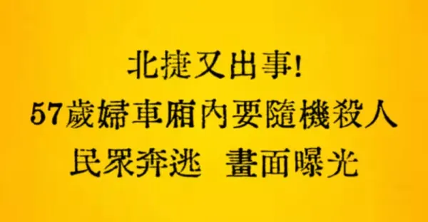 北捷又出事!57歲婦車廂內要隨機殺.人,民眾奔逃畫面曝光