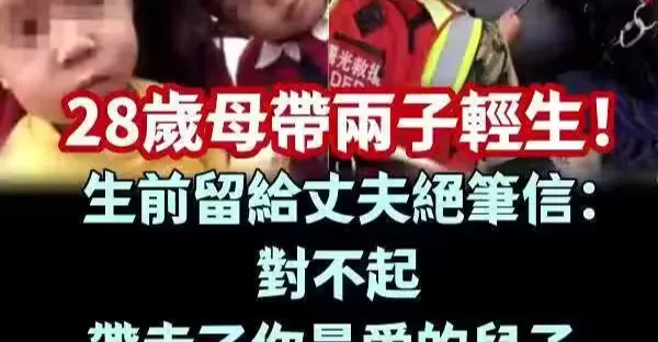 28歲母帶兩子輕.生! 生前留給丈夫絕筆信:「對不起,帶走了你最愛的兒子…」 「遺書道盡婆媳心酸」 連尪也不挺
