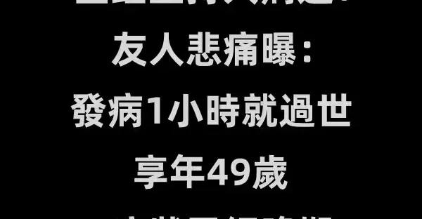 金鐘主持人病逝!友人悲痛曝:發病1小時就過世,享年49歲3症狀已經晚期