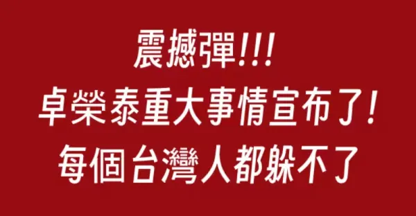 震撼彈!!! 卓榮泰重大事情宣布了!每個台灣人都躲不了