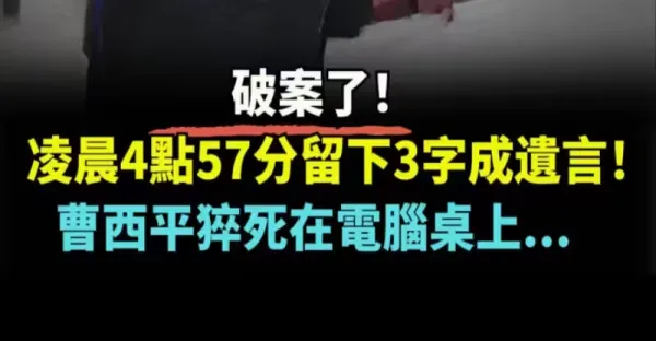 破案了!!! 凌晨4點57分留下3字成遺言!曹西平猝死在電腦桌上...