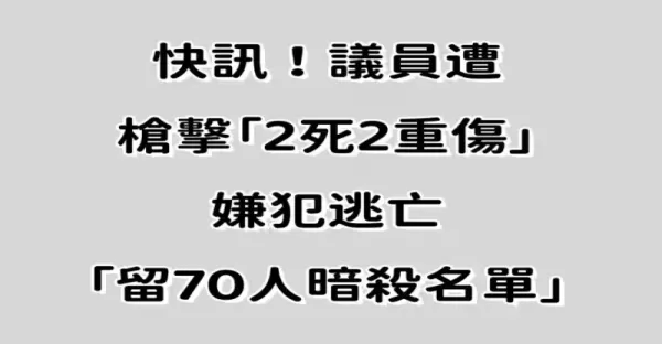快訊 / 議員遭槍擊「2死2重傷」 嫌犯逃亡 「留70人暗殺名單」