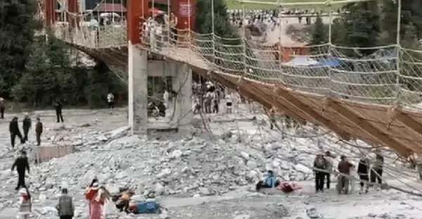 快訊/風景區吊橋突應聲斷裂!29人當場滑落掉河裡「現場慘況曝光!」
