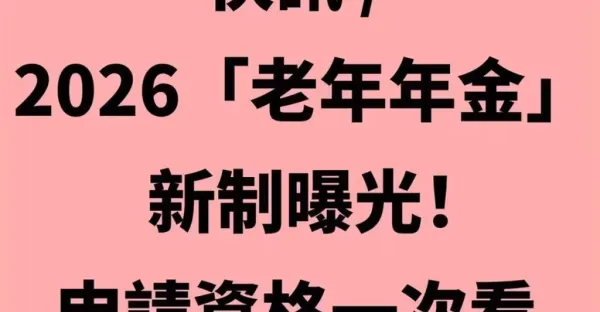 快訊 / 2026「老年年金」新制曝光!!申請資格一次看
