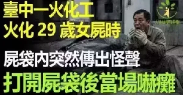 台中一火化工火化29歲女屍時,屍袋內突然傳出怪聲, 他開啟屍袋當場癱坐在地