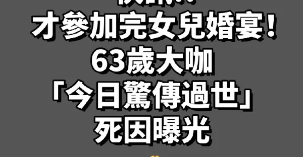 快訊/才參加完女兒婚宴!63歲大咖「今日驚傳過世」 死因曝光