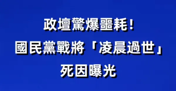 快訊 / 政壇驚爆噩耗!!國民黨戰將「凌晨過世」死因曝光