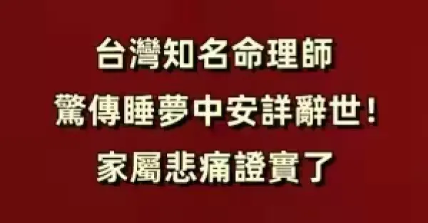 突發/台灣知名命理師驚傳睡夢中安詳辭世!家屬悲痛證實了!