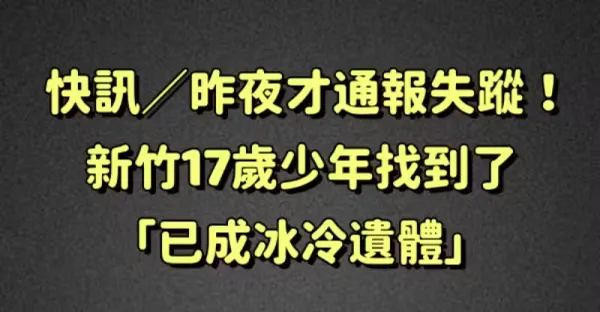 快訊/昨夜才通報失蹤!新竹17歲少年找到了「已成冰冷遺體!」