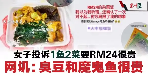 女投訴1魚2菜要24令吉很貴 網譏:臭豆和魔鬼魚很貴