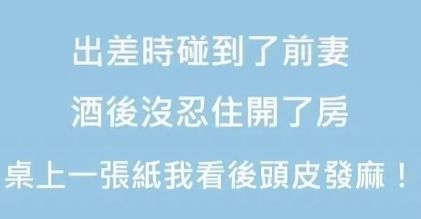 出差時碰到了前妻,酒後沒忍住開了房,隔天桌上有一張紙,我看了以後頭皮發麻