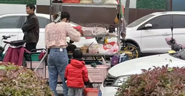 母親腿上繫著兩歲娃工地賣炒飯,網友:手上忙著生活,腿上繫著未來