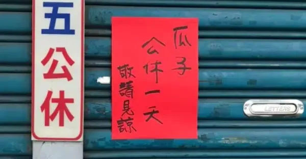 店家突然休息!鐵門貼公告「瓜子公休一天」網愣:不是賣瓜子啊 內行人笑「老闆是客家人啦」