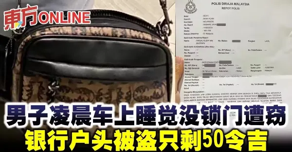 男子凌晨車上睡覺沒鎖門遭竊 銀行戶頭被盜只剩50令吉