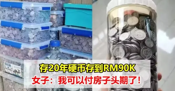 【全部是滿滿的Syiling!】存20年硬幣存到RM90K,女子:我可以付房子頭期了!