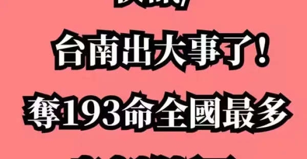 快訊/台南出大事了! 奪193命全國最多,官方說話了!