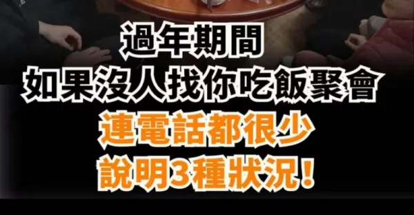 過年期間,如果「沒人找你吃飯、聚會」連電話都很少…說明3種狀況