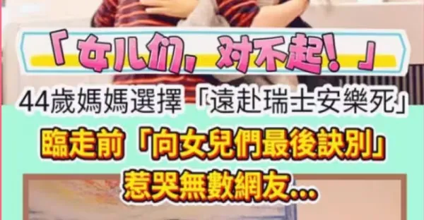 「女兒們,對不起」44歲媽媽選擇「遠赴瑞士安樂死」 臨走前「向女兒們最後訣別」惹哭無數網友...