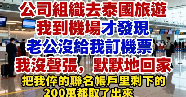 公司組織去泰國旅遊,我到機場才發現老公沒給我訂機票,我沒聲張,默默地回家,把我倆的聯名帳戶里剩下的200萬都取了出來!