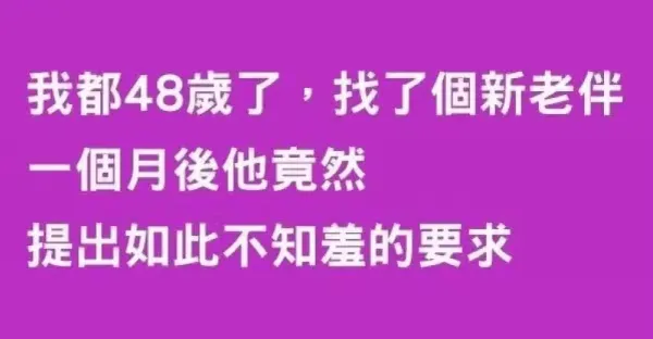 我都48歲了,找了個新老伴,一個月後他竟然提出如此不知羞的要求!