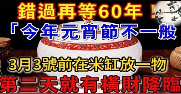 錯過再等60年!3月3號元宵節當天,只要在米缸放一物,第二天就有好運降臨,再窮都能改命!